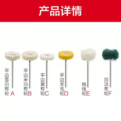 (A) Flat-edged snow-white cloth wheel (B) Flat-sided rice-white cloth wheel (C) Flat-sided yellow cloth wheel (D) Flat-sided wool wheel (E) Cotton thread wheel (F) Cloth wheel