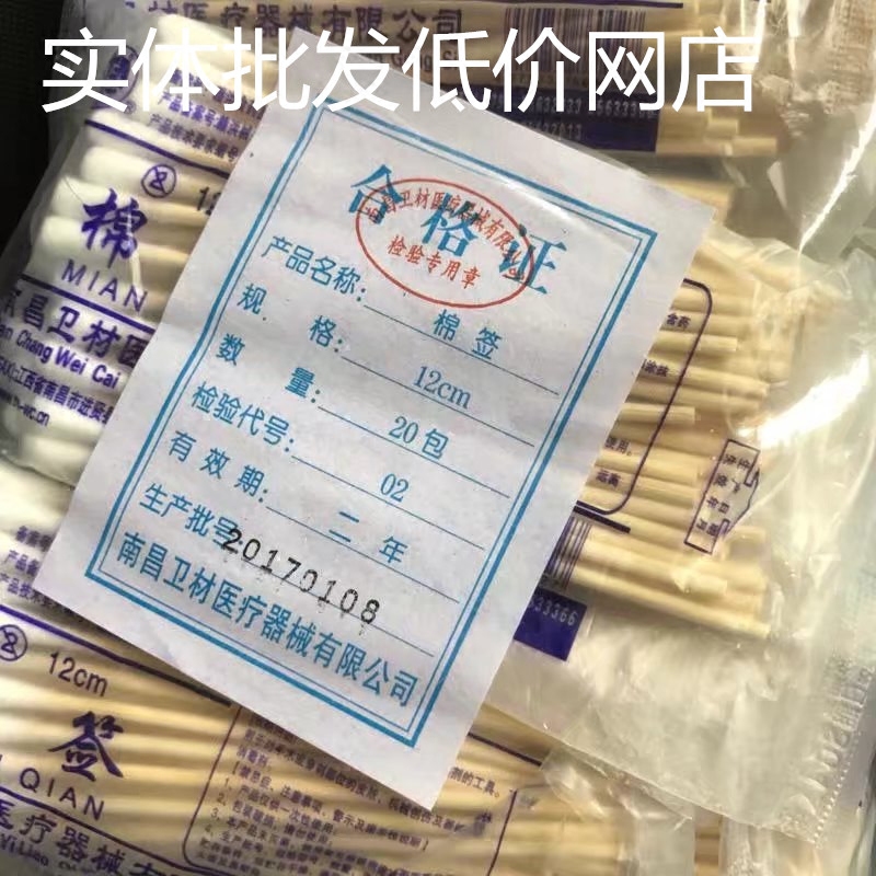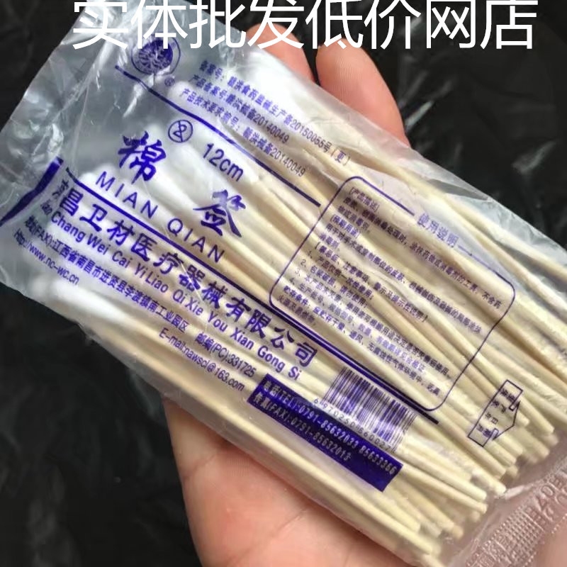 Nanchang Wei material 12 cm single head disposable wood stick cotton stick Clean sanitary cotton baton 50 packets