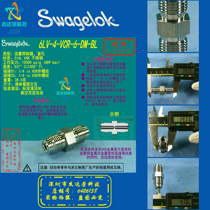 (6LV-4-VCR-6-DM-BL) Swagelok Shigelok VCR Joint blind traffic jam