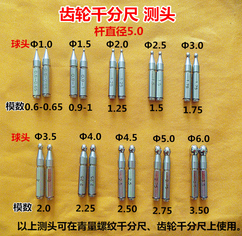 Ball head diameter 1 modulus 0 6-0 65 pair of ball head diameter 1 5 modulus 0 9-1 pair of ball head diameter 2 0 modulus 1 25 pair of ball head diameter 2 5 die