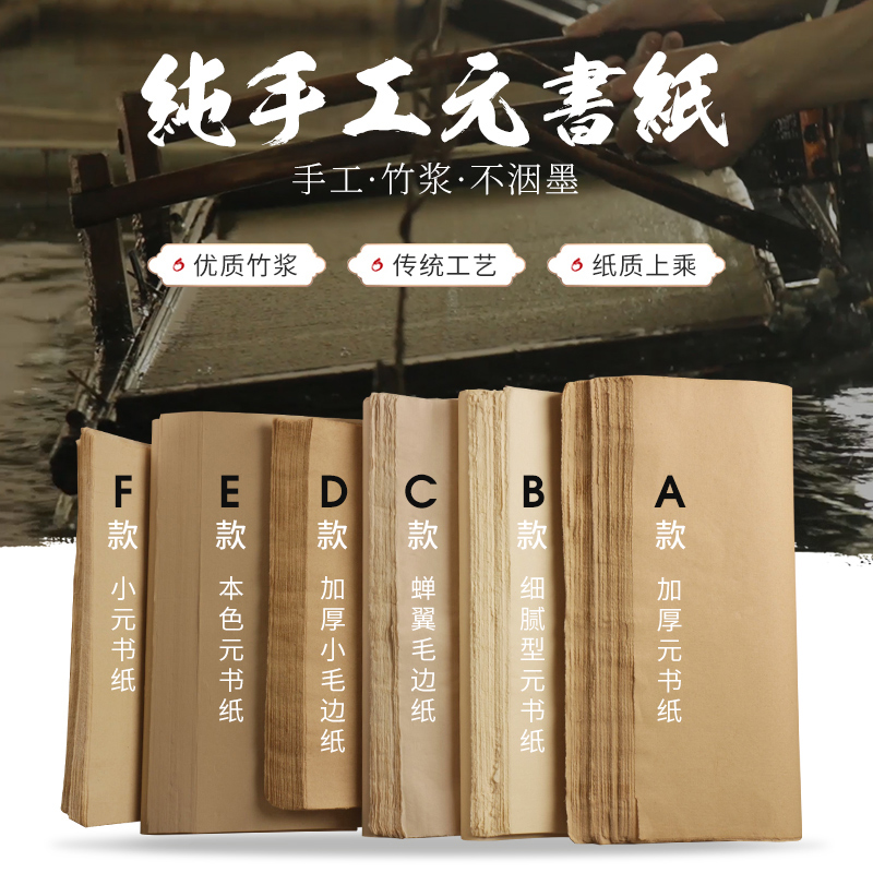 A section thickened handmade Yuan book paper 48*48 80 sheets B section handmade yuan book 45*75 100 sheets Delicate type C section Cicada wings ultra-thin flash paper 46*75cm 50 sheets D section