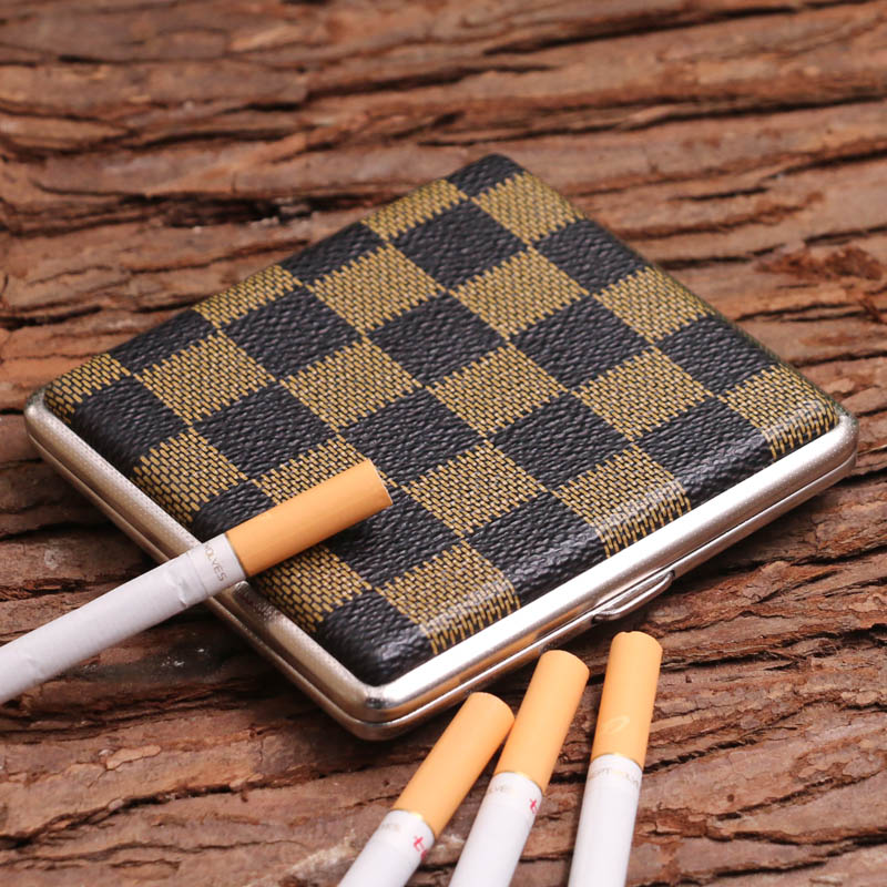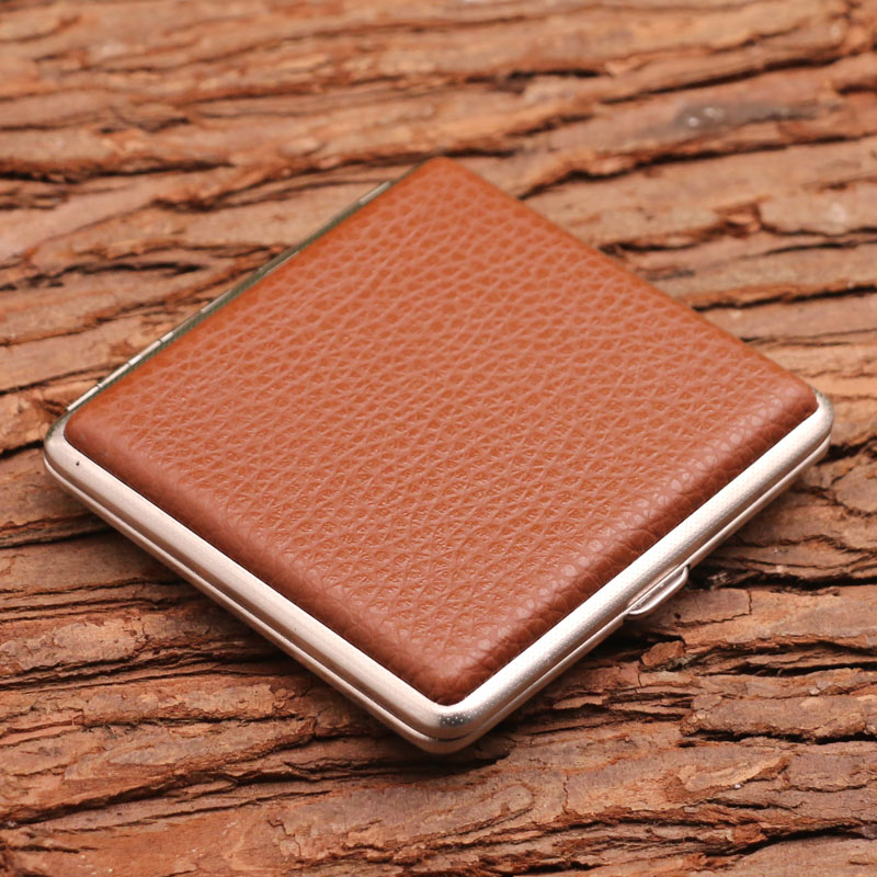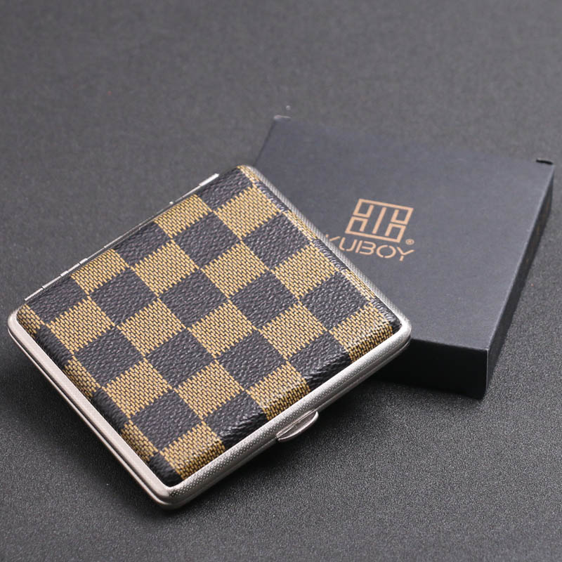 KUBOY COOK 20 Cigarette Box Men's creative flip metal leather cigarette box portable anti - press smoke clamp with you