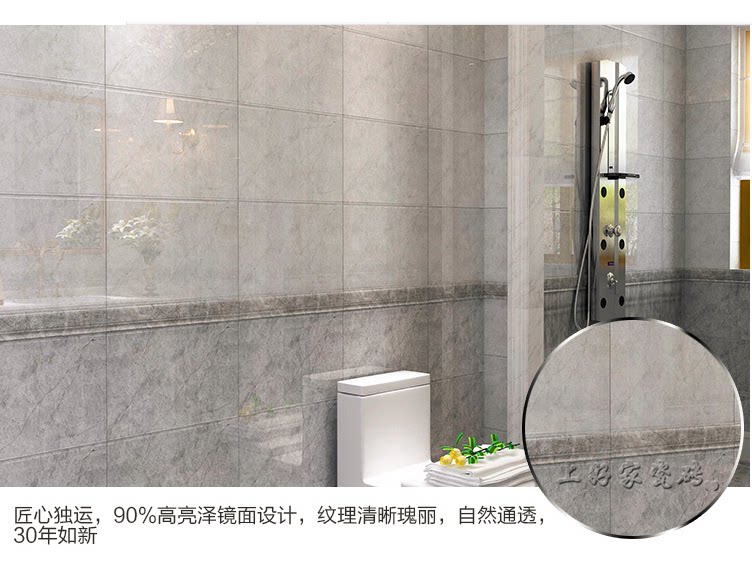 300*600 light wall tiles 300*600 dark wall tiles 300*300 non-slip floor tiles 600 length waistline matching flower pieces