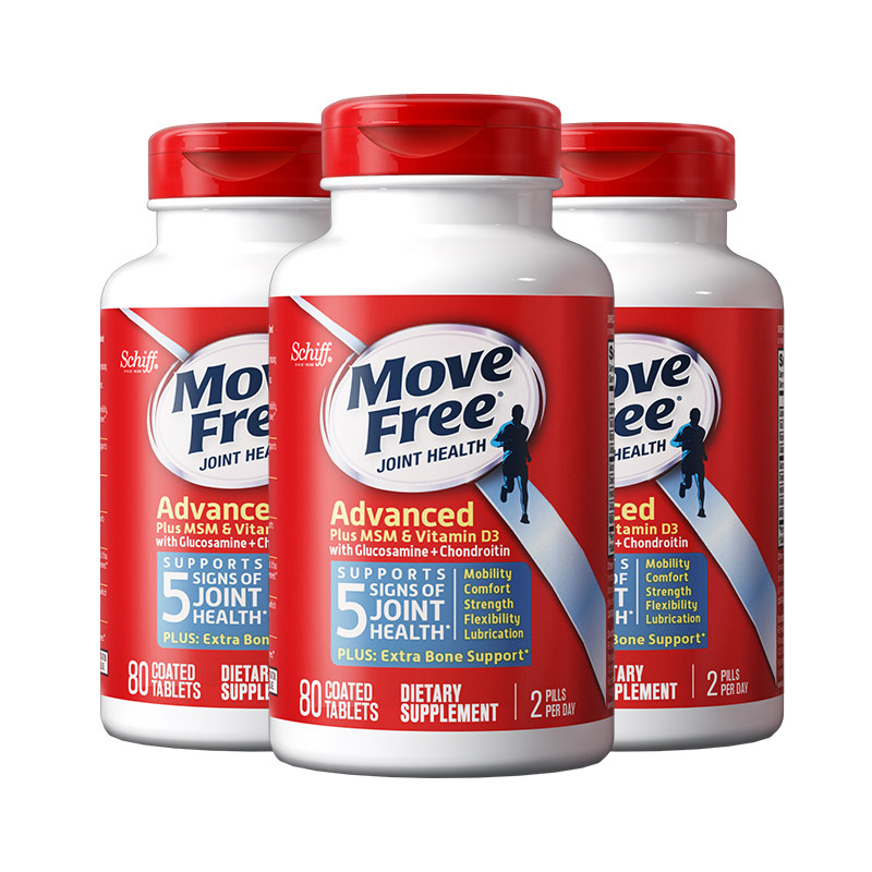 American Schiff Move Free Glucosamine Chondroitin Dimensional Bone Strength MSM Enhanced Blue Box 80 Capsules * 3 Bottles