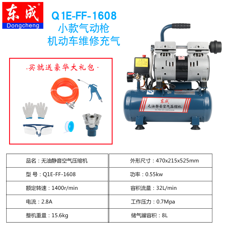 Dongcheng oil-free silent air pump air compressor straight nail gun small air compressor 220v woodworking paint pump