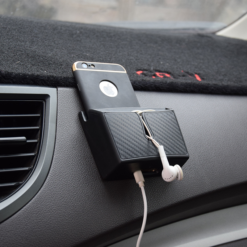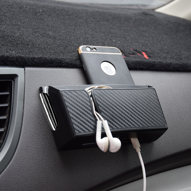 Car double-layer storage box Car door side mobile phone bag Removable double-sided adhesive does not leave imitation carbon fiber texture