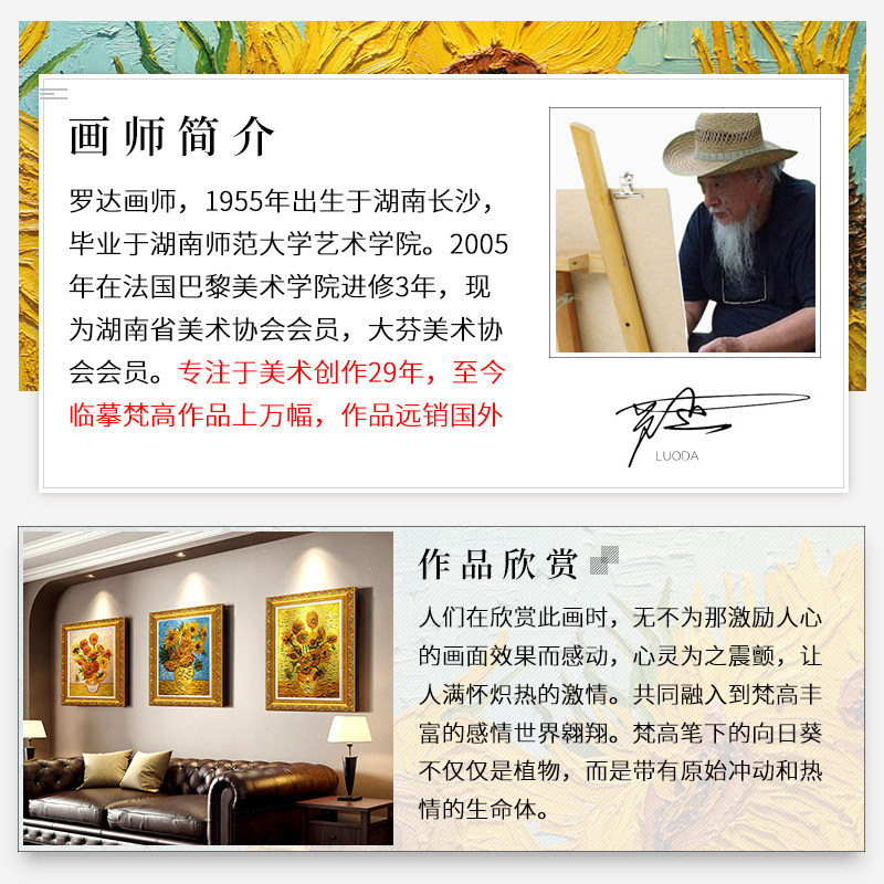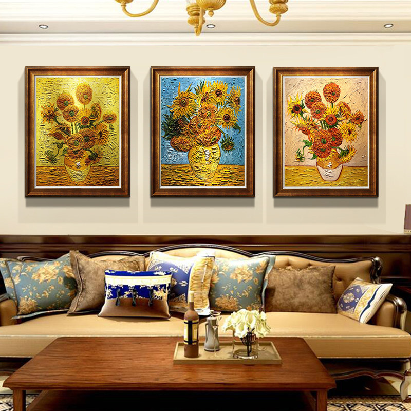 Hand-painted oil painting Sunflower Van Gogh decorative painting European-style American finished world famous painting entrance mural restaurant hanging painting