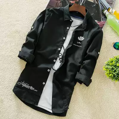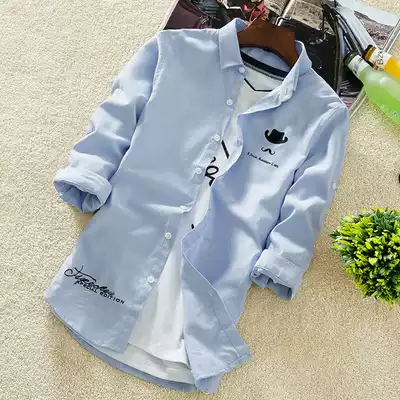 Spring, summer and autumn men's Korean short-sleeved shirt slim three-point sleeve student inch shirt mid-sleeve clothes trend jacket