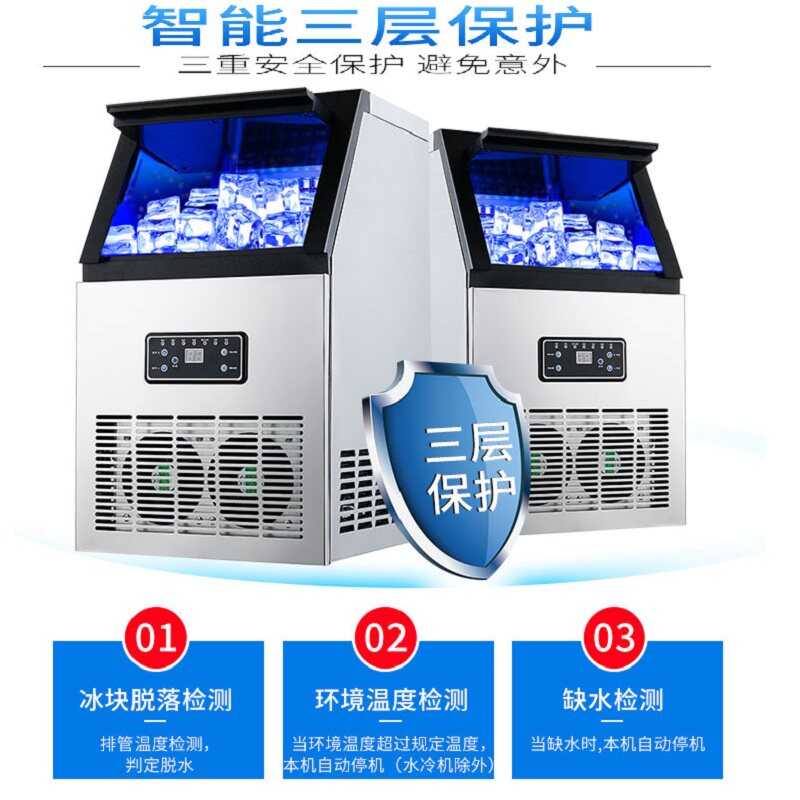 Commercial ice maker fully automatic stainless steel small milk tea shop square barrel one-piece smart blue light