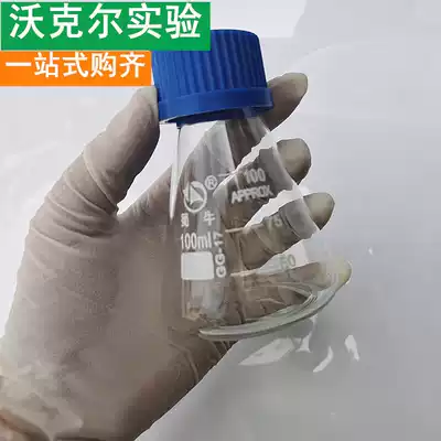 Experimental consumables Shu Niu glass spiral triangle flask Cone flask Black cover small mouth Blue cover large mouth High temperature resistance