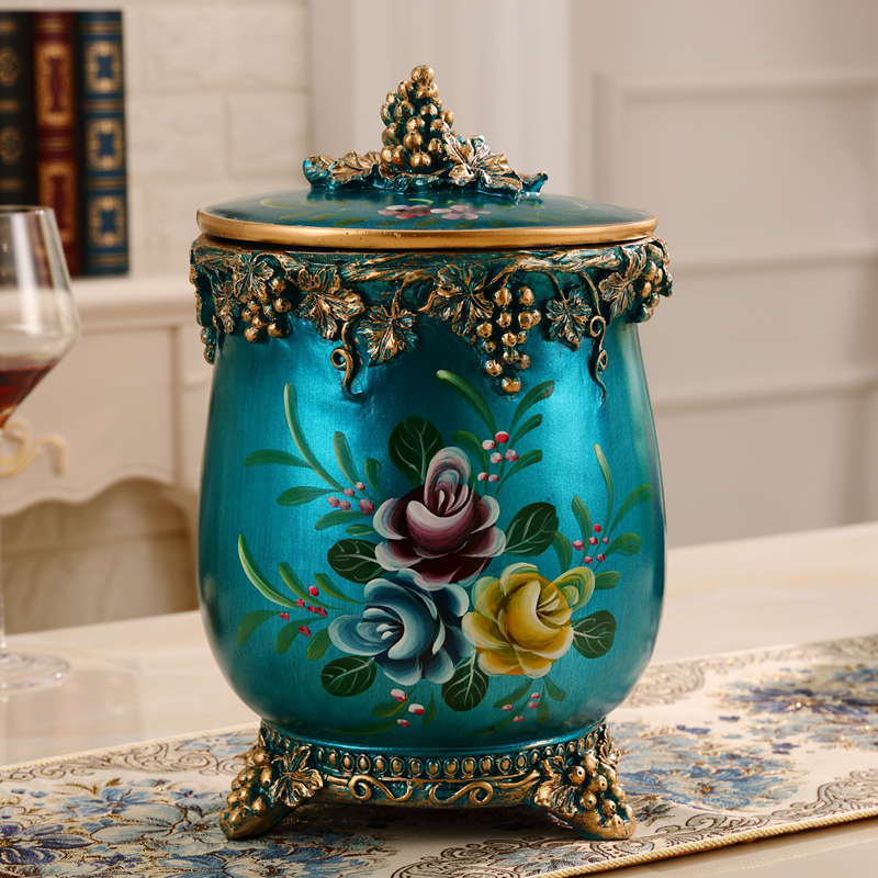 Creative European household trash can Living room bedroom kitchen powder room Large garbage can with lid American decoration