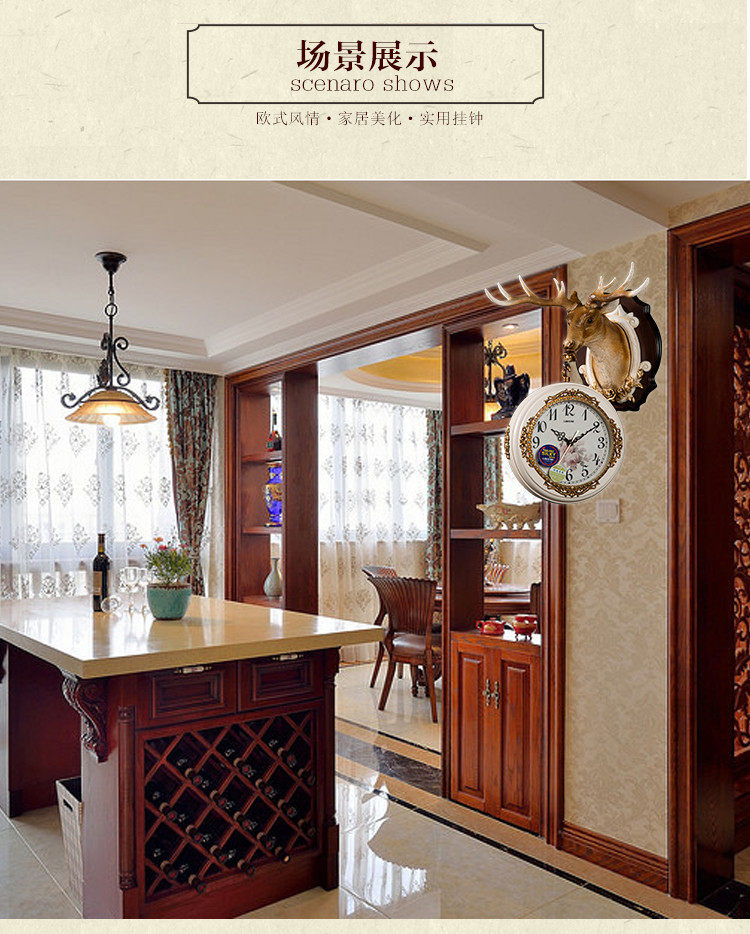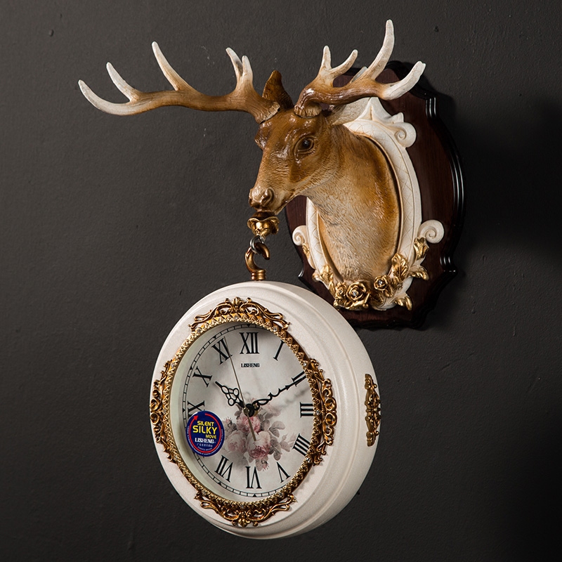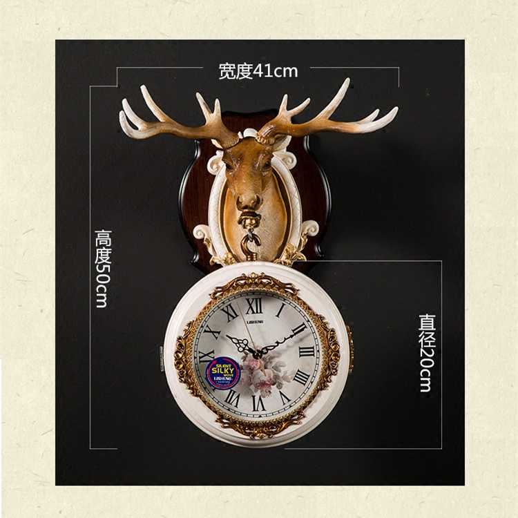European double-sided wall clock watch living room American Nordic Deer head home silent hanging clock clock creative atmosphere hanging watch