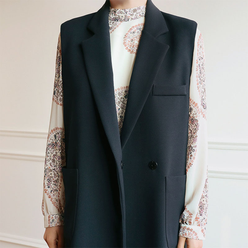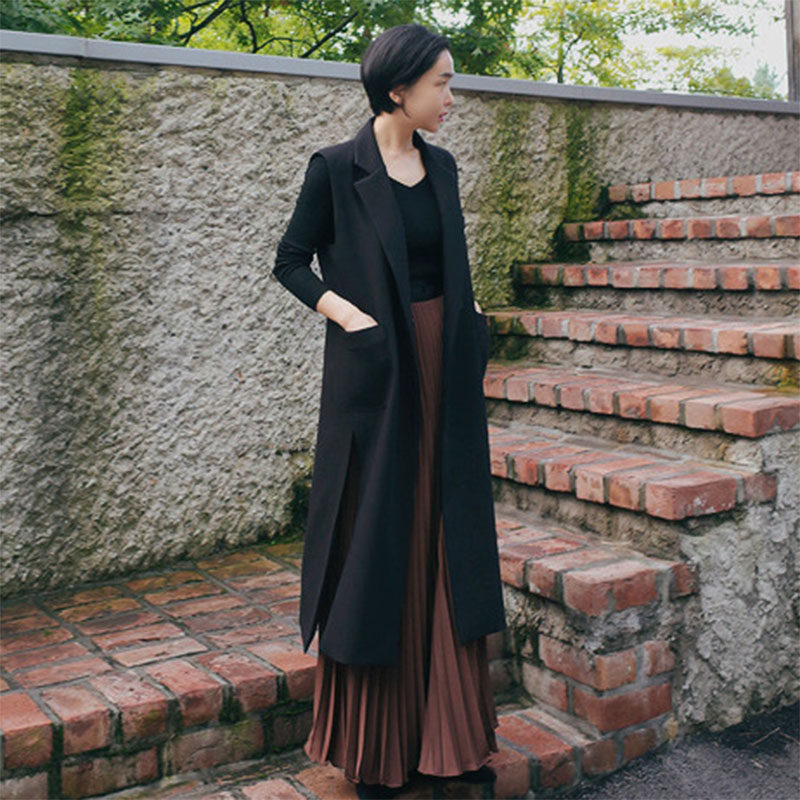 Spring and Autumn Han Edition cross-fork long suit vest female shoulder to the knee sleeveless lean vest with a button sweater
