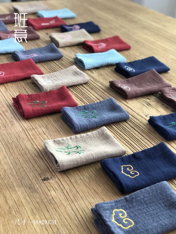 Banyi cotton hemp embroidery tea towel absorbent four-layer thickened Chinese style embroidery tea cloth tea mat Tea ceremony accessories