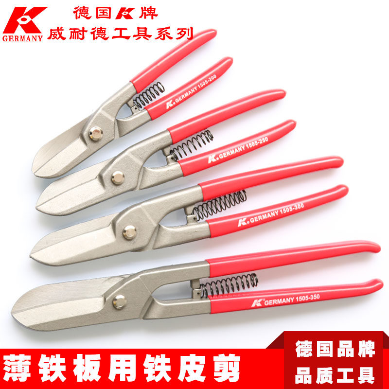 German K card industrial class powerful labor-saving type iron sheet stainless steel spring scissors imported aeronautical cutting tools