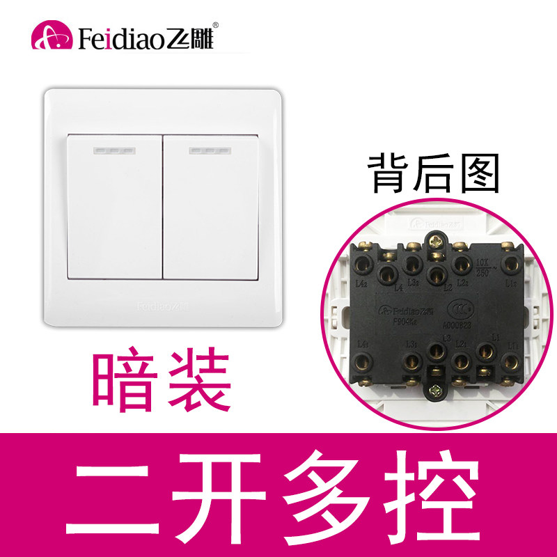 Flying Sculpture Diectomy Double Cut Open Multi-Control Midway Electric Light Switch Home Electric Light Switch panel Double joint Ming 86 Type of wall