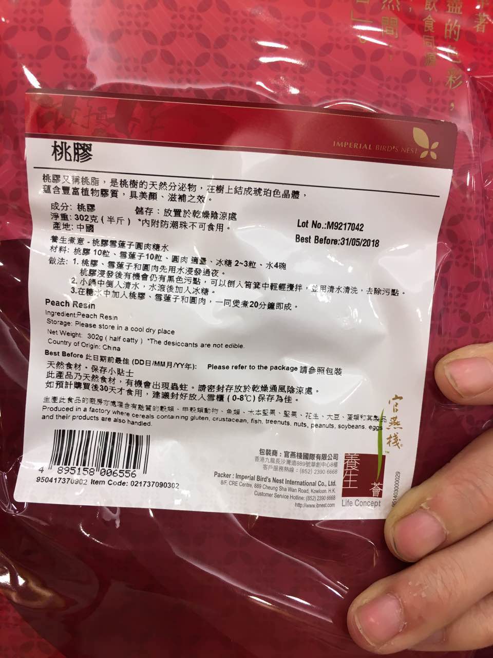Hong Kong official Yan Stack Peach Gum 302 gr Peach Oil Peach Fat Collagen Rich