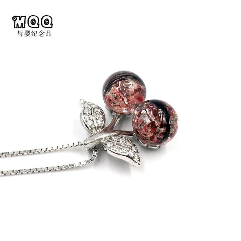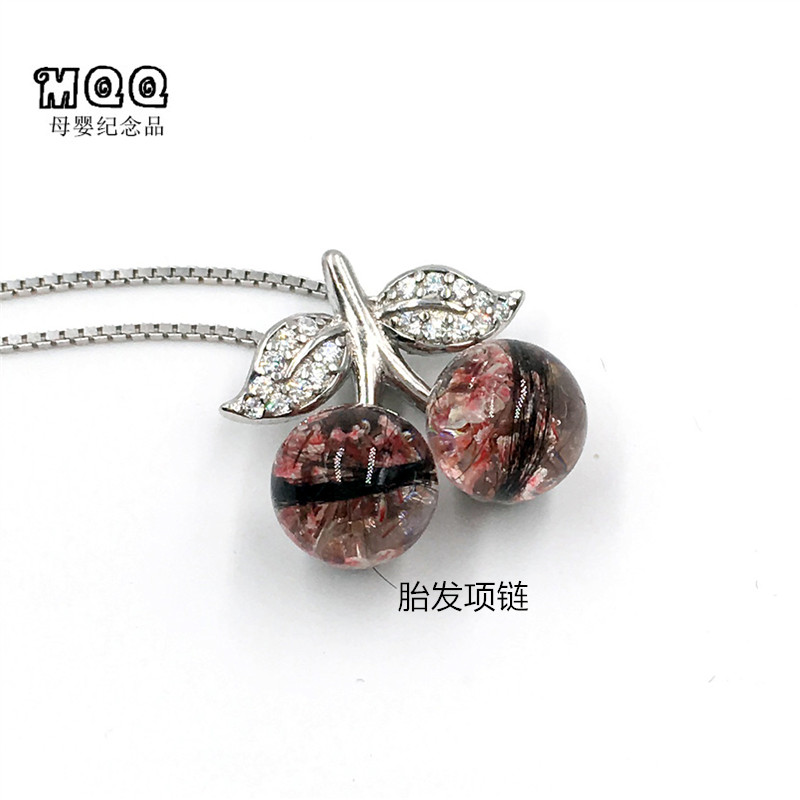 Twin fetal hair souvenir made cherry fetal hair pendant sterling silver necklace breast milk commemorative DIY permanent preservation
