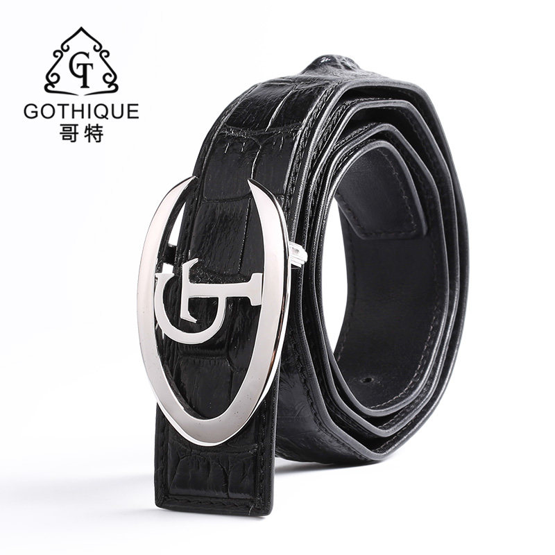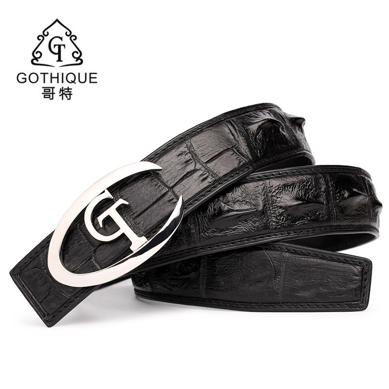 Gothic import bay crocodile belt men's leather 925 silver belt head smooth buckle business high-end light luxury pants belt