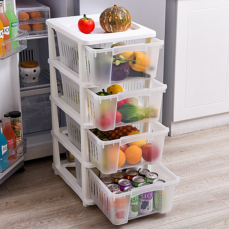 Japan-style drawer-type plastic fruit containing basket finishing box multilayer floor-floor kitchen shelve fruit and vegetable containing basket