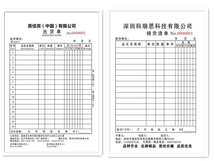 Receipt out of the library delivery slip sales list Two-link triple no carbon rewritten joint document print set to be customized