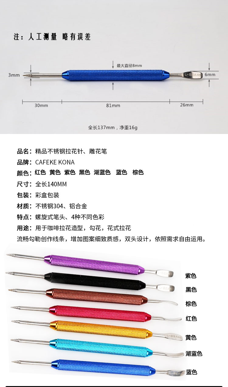 Stainless steel color drawing needle fancy coffee carved needle carved rod carved pen aluminum alloy non-slip handle