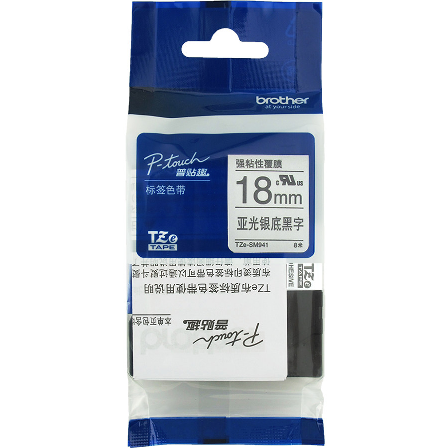 Brothers label ribbon TZe-SM941 sublight silver bottom black character 18MM adhesive strong adhesive label paper PT-18RZ