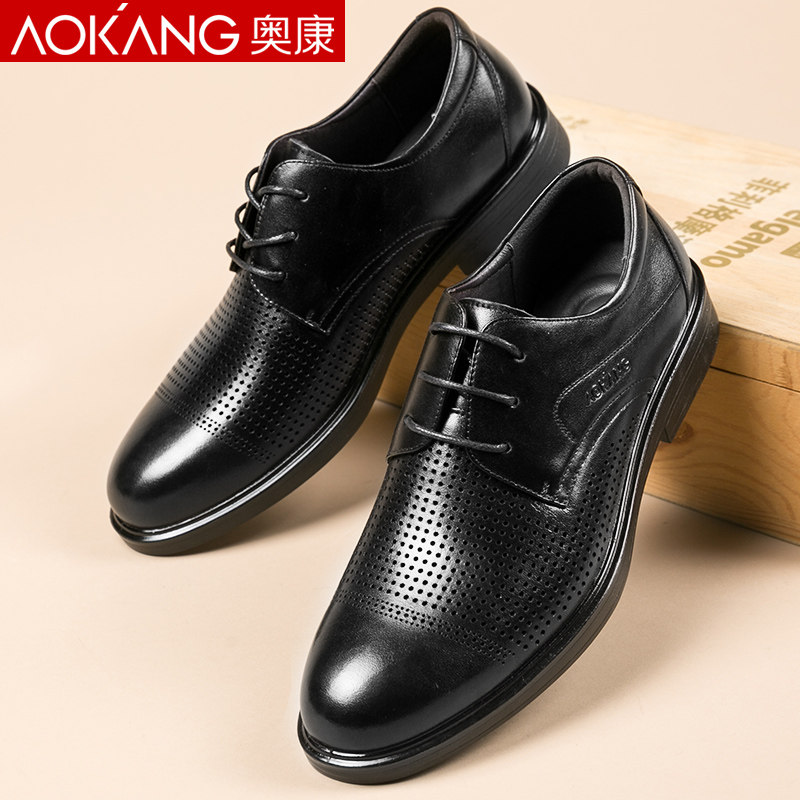 Okom Men Shoes Summer Business Positive Dress Men Leather Shoes Leather Breathable Laces Middle-aged Hollowed-out Dad Cool Leather Shoes