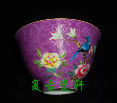 Jingdezhen fine ceramics special art porcelain pastel hand-painted purple glaze pick flowers, pick flowers, birds, floral teacups, teacups