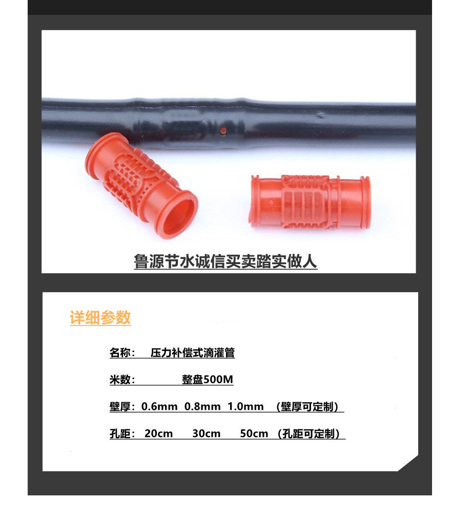 Wall thickness 0.6* Dripper spacing 50 (500m Disc) Wall thickness 0.6* Dripper spacing 30 (500m disc) Wall thickness 0.6* Dripper spacing 20 (500m disc) Wall thickness 0.8* Dripper spacing 50 (500m disk) Wall thickness 0.8* Dripper spacing 30 (500m disk) Wall thickness 0.8* Dripper spacing 20 (500m disk) Wall thickness 1.0* Dripper spacing 50 (500m disk) Wall thickness 1.0* Dripper spacing 30 (500m disk) Wall thickness 1.0* Dripper spacing 20 (500m disc) Wall thickness 0.6 * Dripper spacing 15 (500m disc) Wall thickness 0.8 * Dripper spacing 15 (500m disc) Wall thickness 1.0 * Dripper spacing 15 (500m disc) Wall thickness 1.0 No pore a roll 500 meters Can be customized hole spacing 20×1.0×33cm500 meters