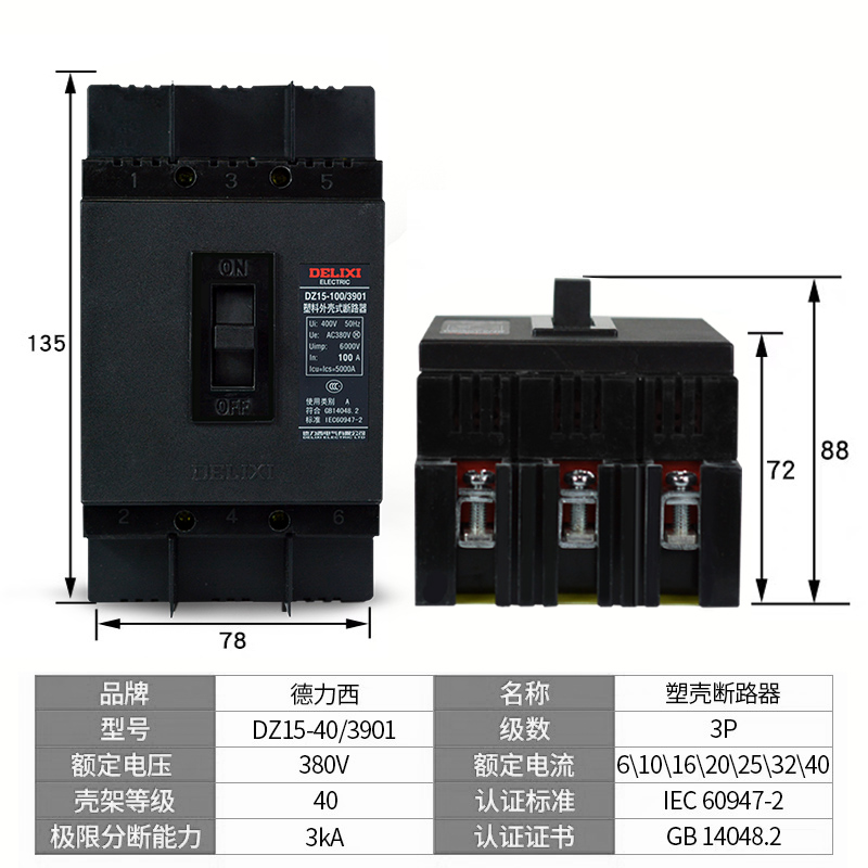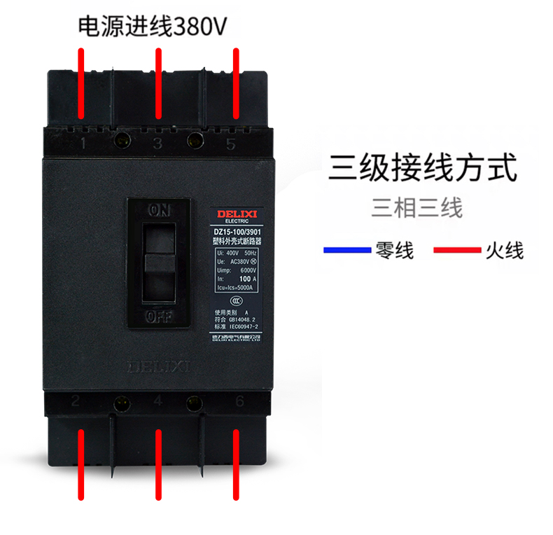 Delixi molded case circuit breaker DZ15-100 3901 40A 63A 100A three-phase three-wire 380v