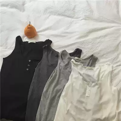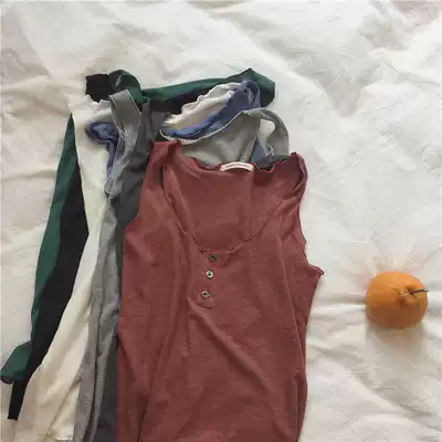 muzi pure cotton threaded solid color sleeveless vest women's summer Korean version of slim and wild bottoming shows thin outer wear trend