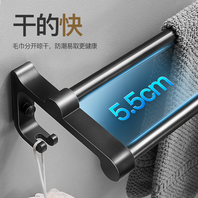 60CM] One-piece towel bar (flagship) space aluminum double towel bar without drilling and drilling installation can be equipped with putty(do not shoot this item)