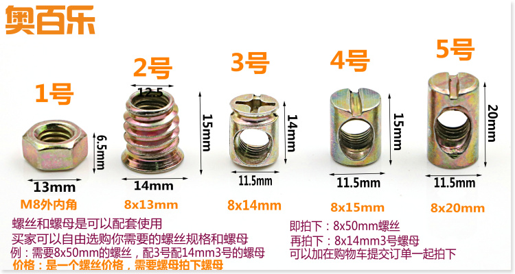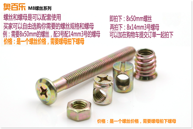 M8 furniture hardware screw baby boy bed accessories screw cross hole nut bookcase diagonal flat head screw hammer nut