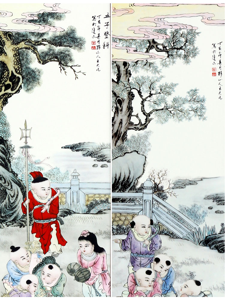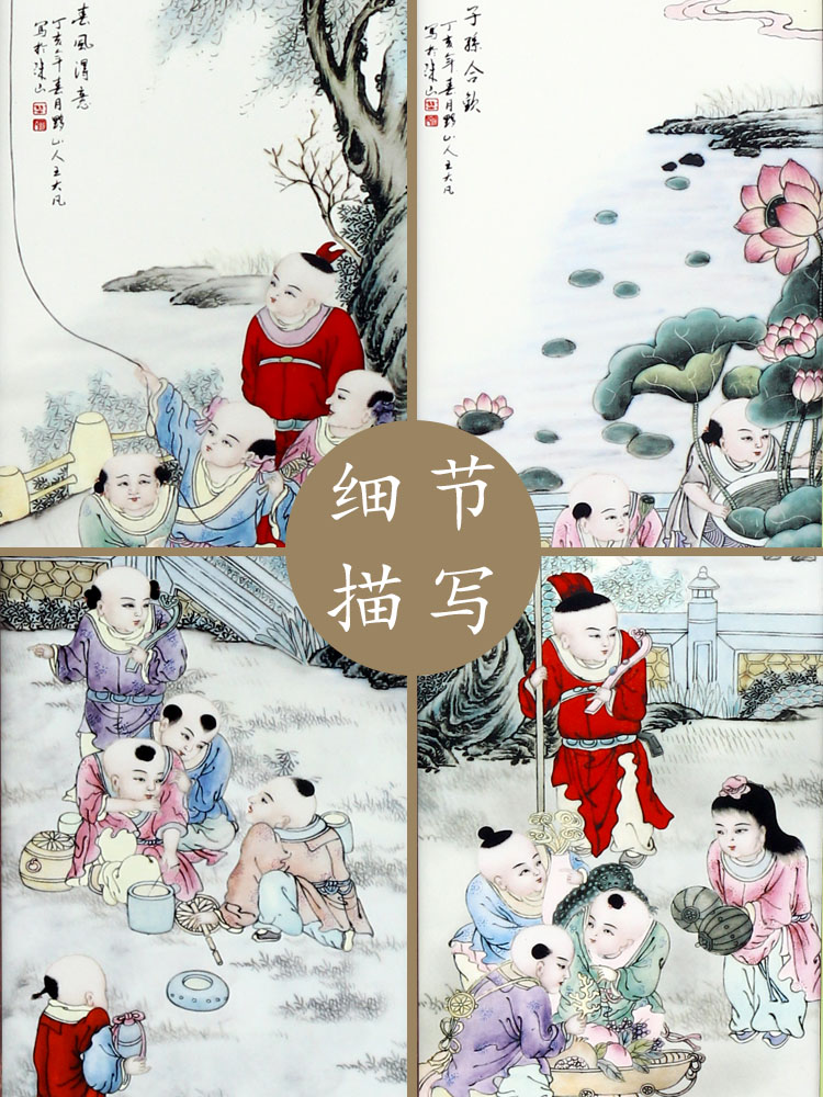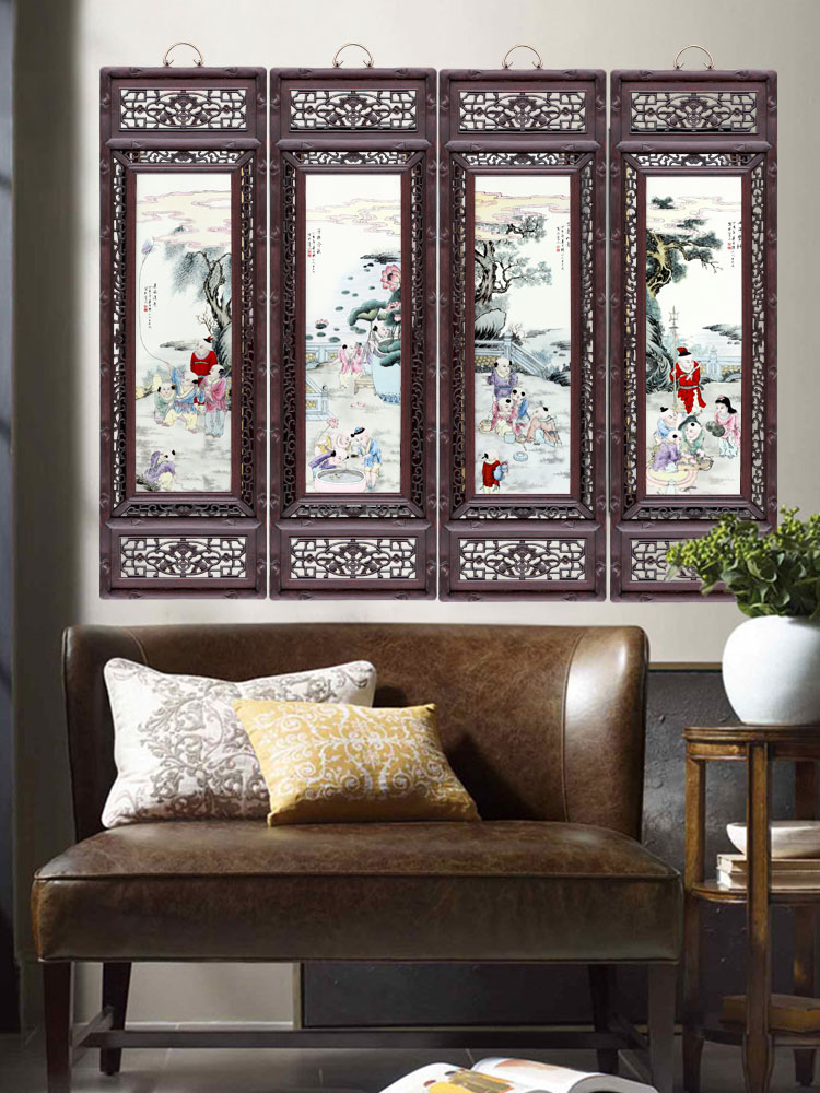 Jingdezhen home decoration painting hotel living room background painting porcelain plate painting modern Chinese ceramic painting four screen decoration