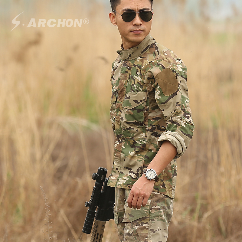 Archon outdoor camouflage men's shirt long sleeves spring and autumn slim workwear tactical shirt casual multi-pocket thin coat