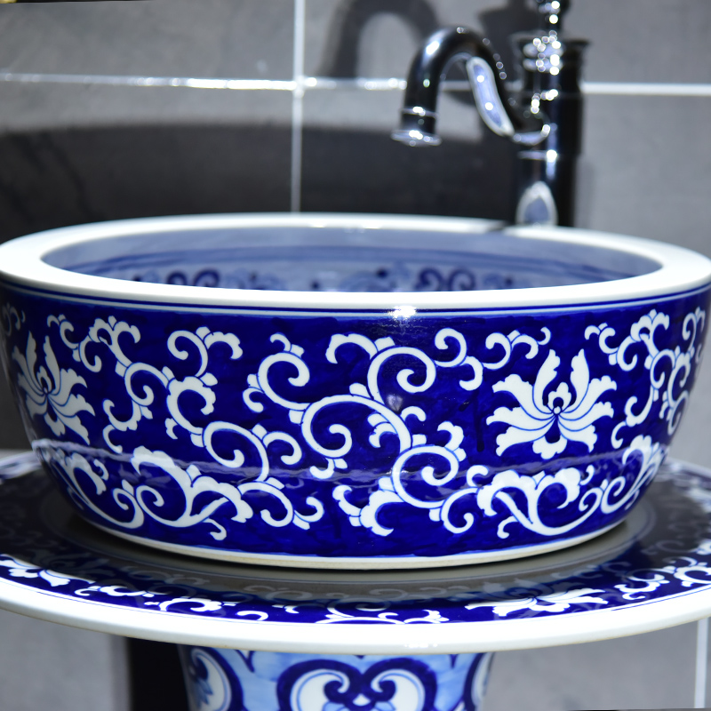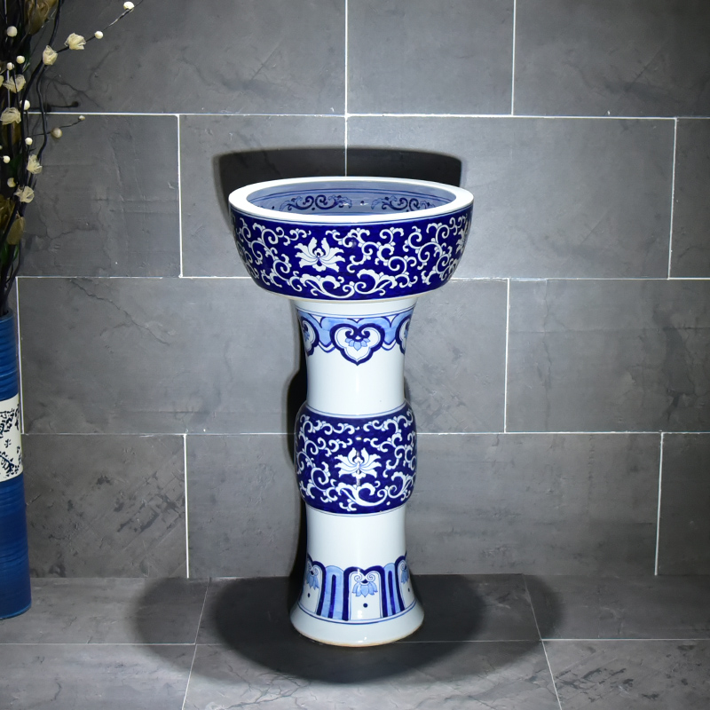 Jingdezhen Qinghua Hand Painted Washbasin Ceramic Floor Style Makeup Room Upright Post Basin Washbasin Balcony Handwashing Pool
