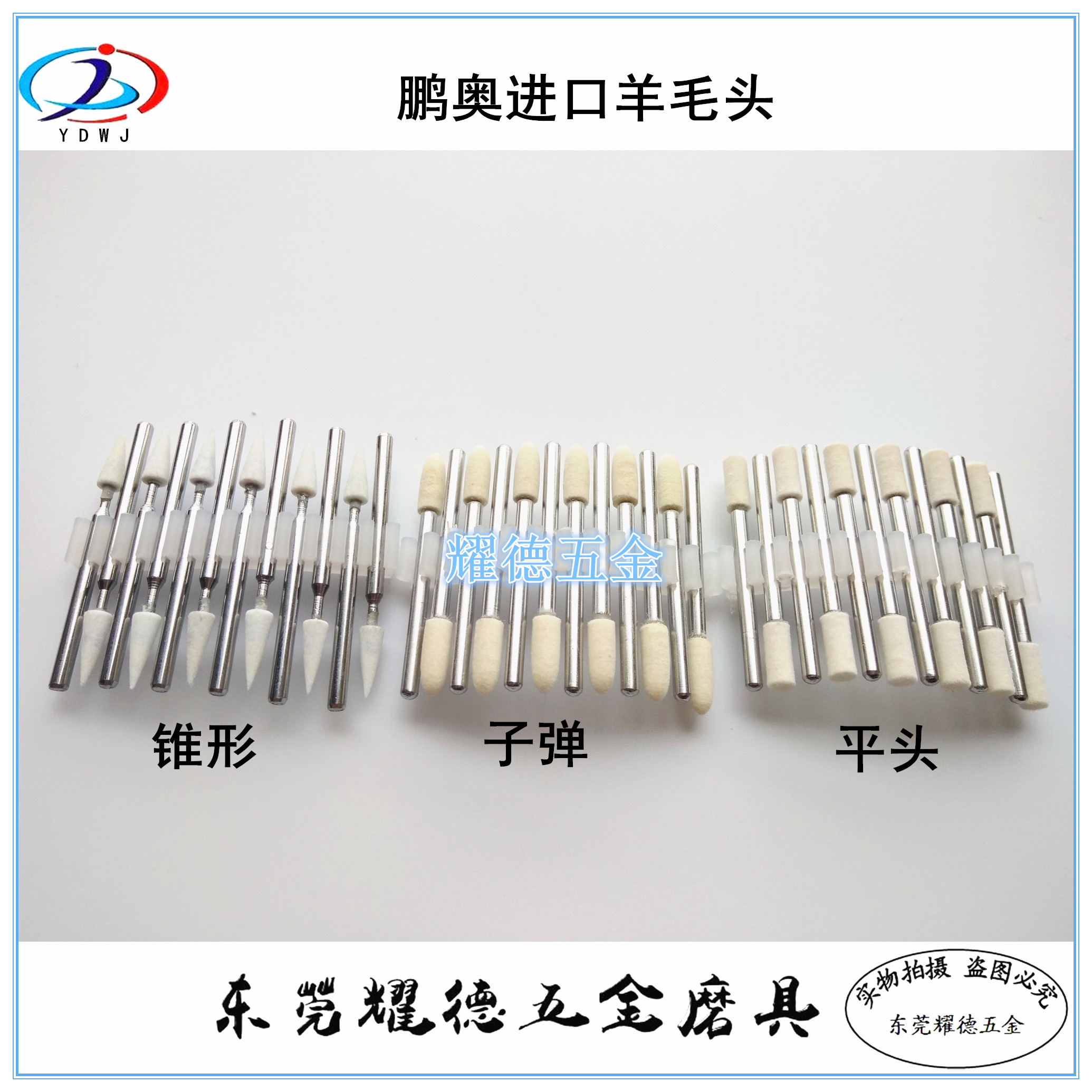 Popenau high light wool grinding head wool wheel metal jade mirror polished grinding head 3 handle imported conical cotton ball