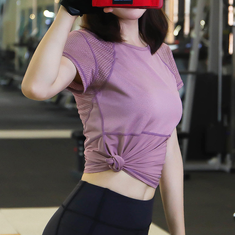 Sports T-shirt women's quick-drying short-sleeved women's fitness suit Loose mesh breathable running T-shirt yoga suit has a large size summer