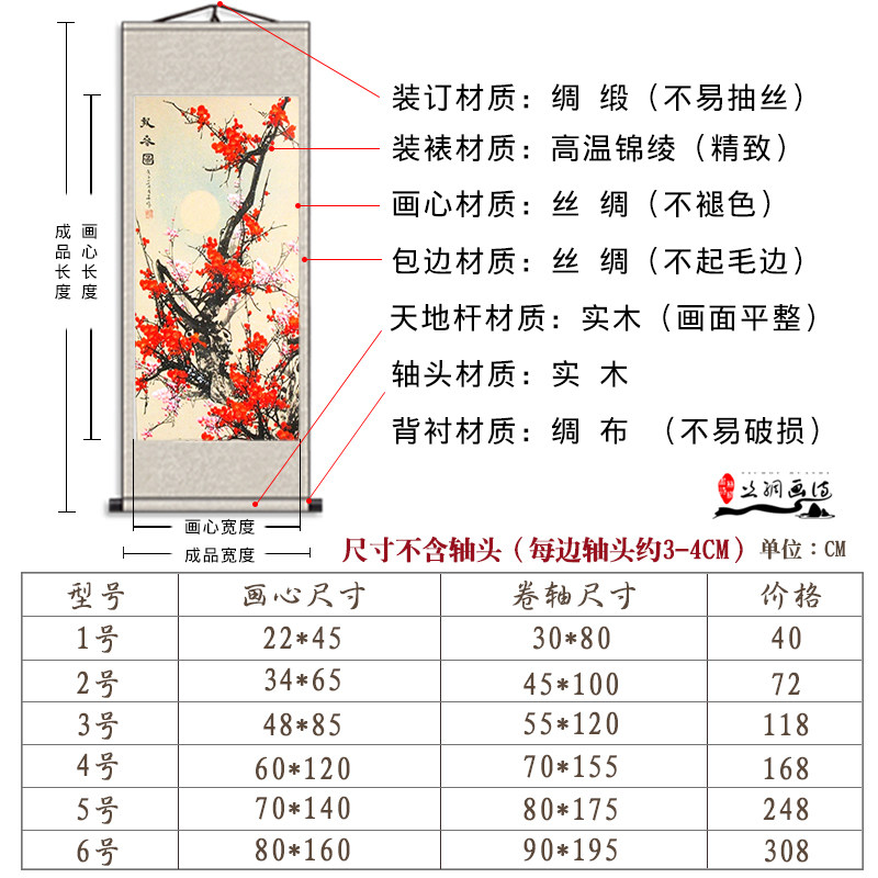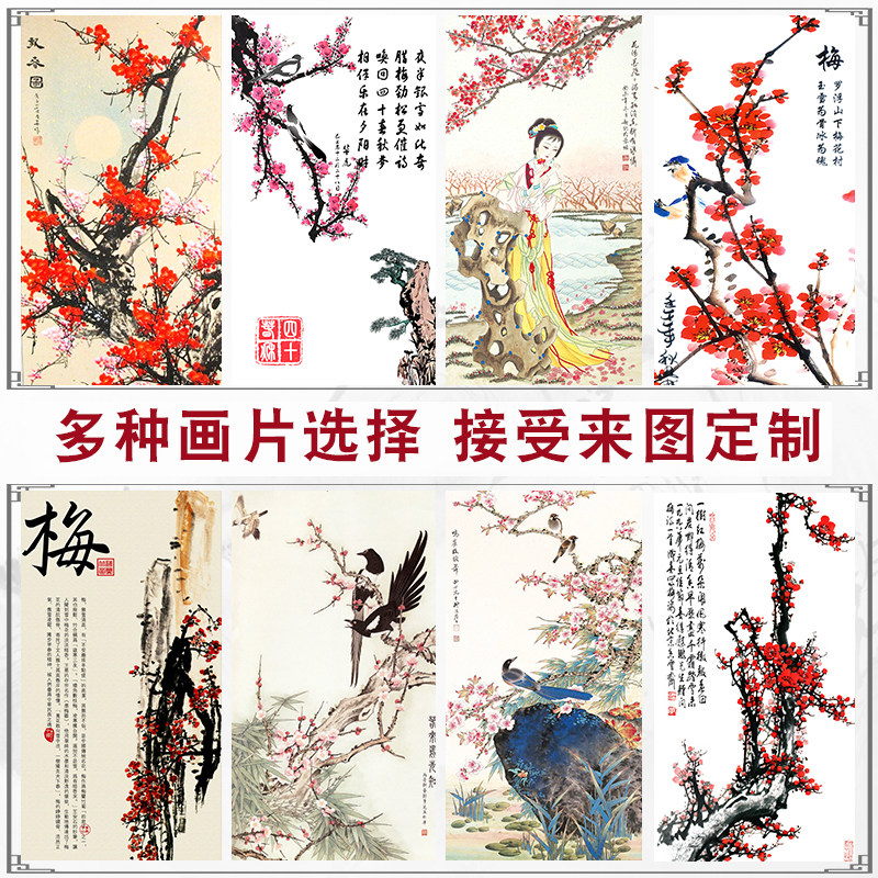 Silk painting Hongmei News Spring Tuguo State painting Living room Decorative Painting Gift Painting Scroll Drawing Flower and bird character Plum Blossom of Good luck