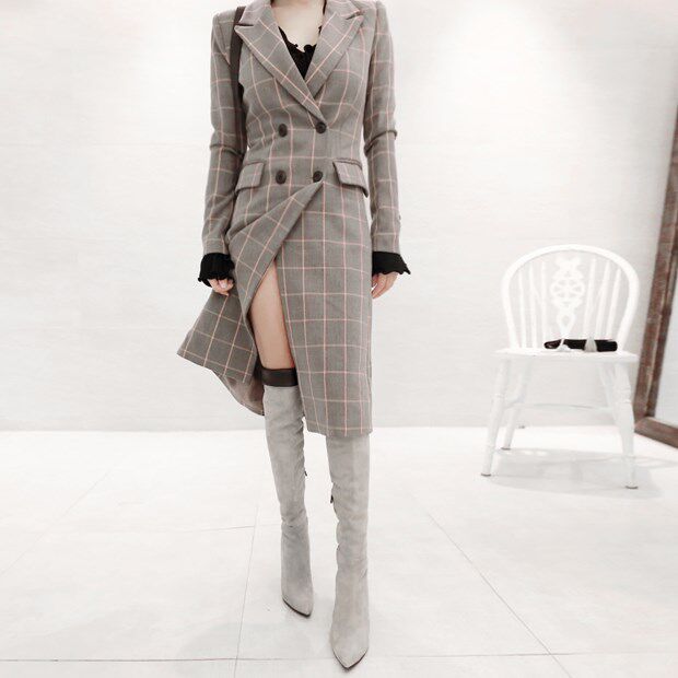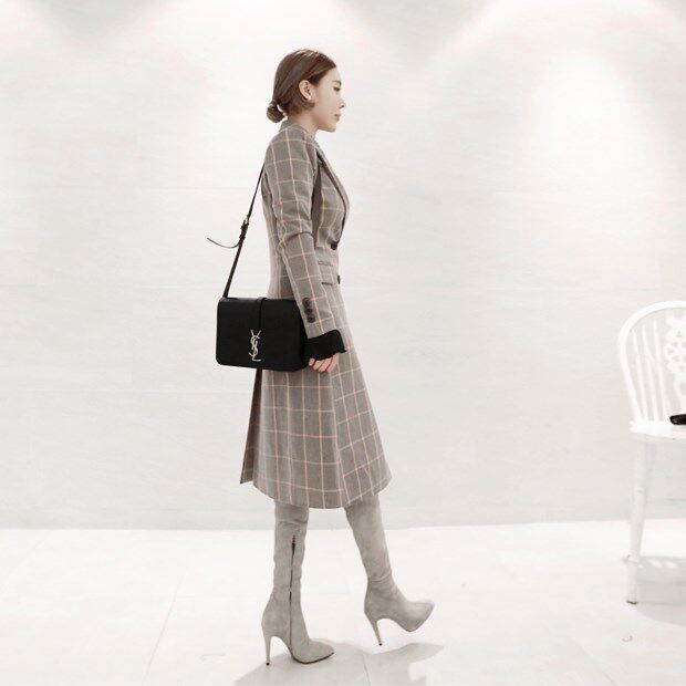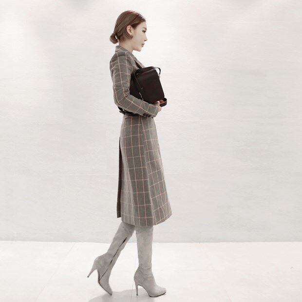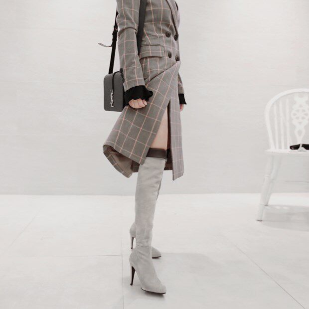 Korea hand-made fashionable soft-surface frosted sheep skin light tip tight legs over knee sexy boots grey