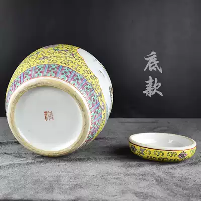 Jingdezhen Cultural Revolution Factory goods porcelain pastel hand-painted yellow window character birthday Star Birthday star Baozhu altar tea cans cover cans