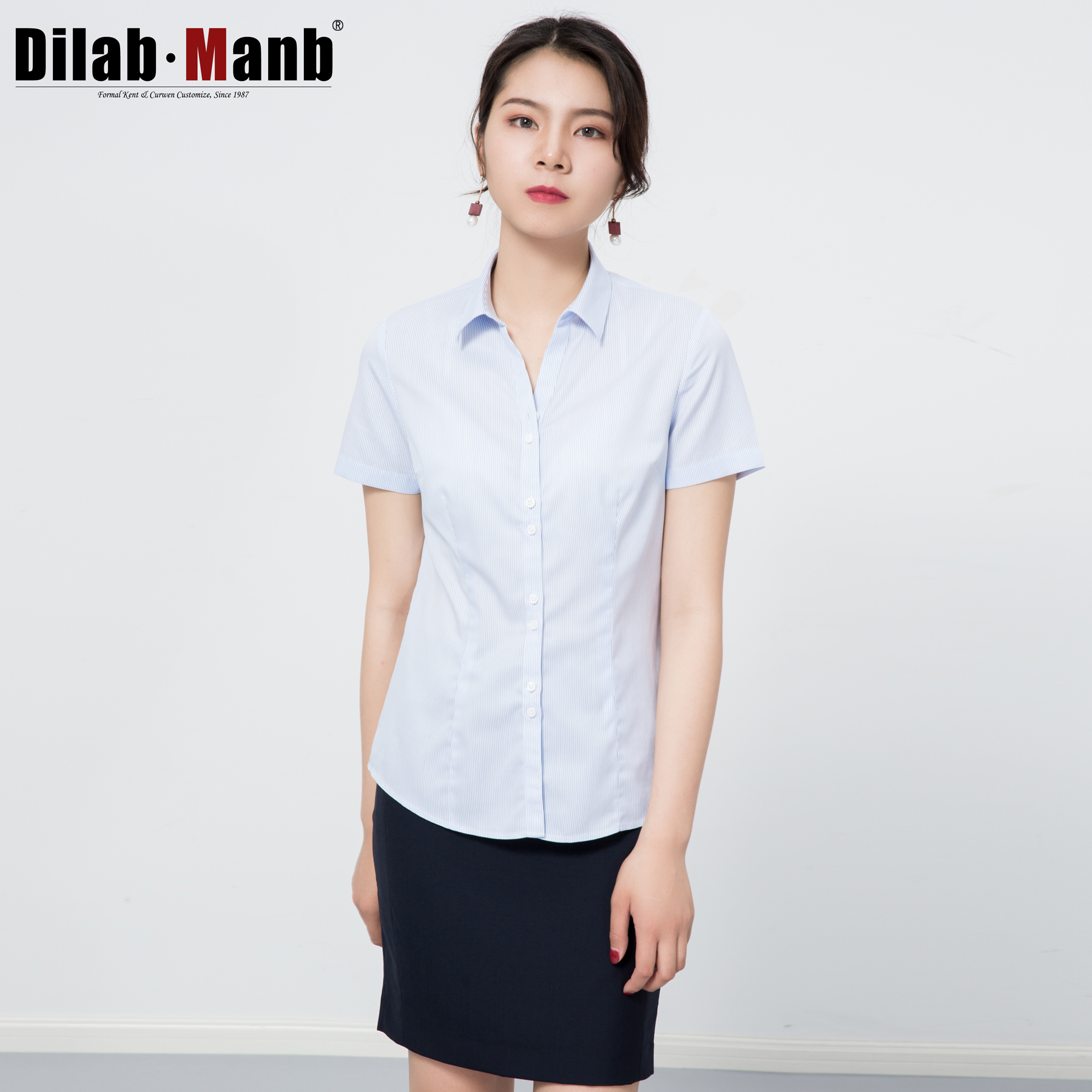 Dimeng professional shirt women's short-sleeved iron-free summer striped cotton shirt women's overalls OL interview dress half-sleeved