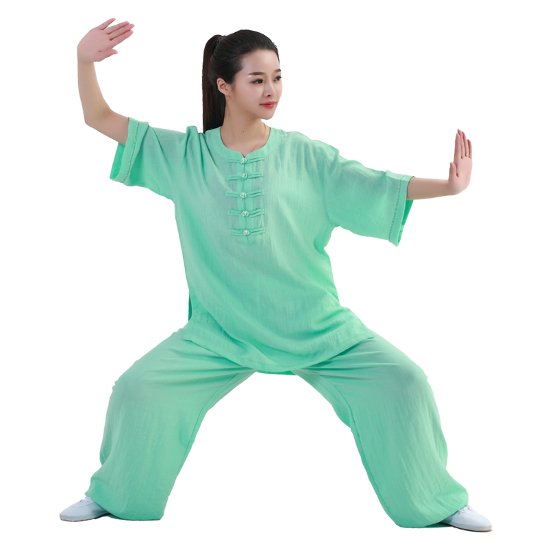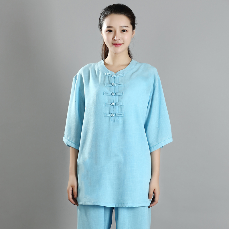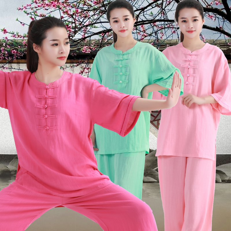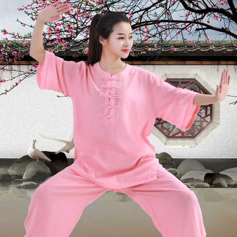 New Tai Chi-clothing female flax cotton short sleeves mid-summer mid-aged and persuasive martial arts tai chi performance clothing