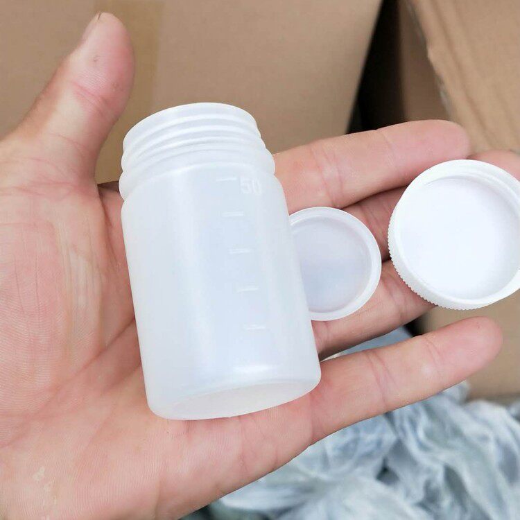 50ml plastic bottle with inner cover water bottle 5060ml large mouth with graduated powder solid sample reagent bottle