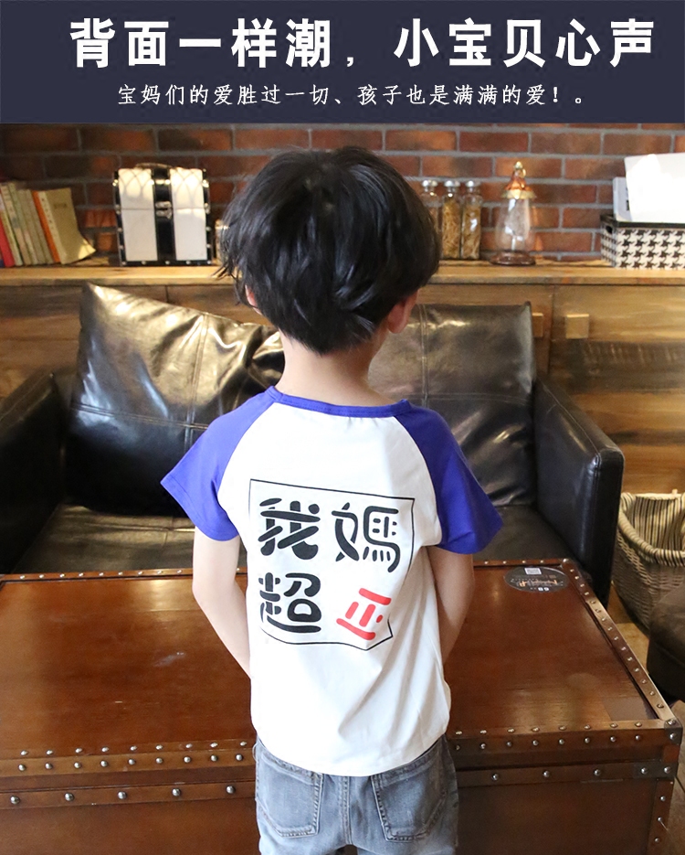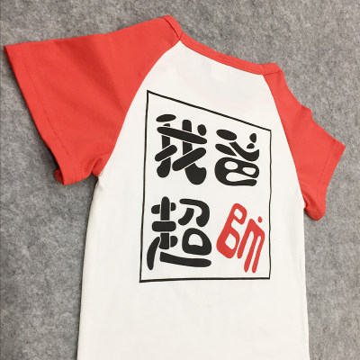Children's clothing short-sleeved my dad is super handsome cotton round neck T-shirt children's bottoming shirt boys and girls doll shirt summer my mother is super positive