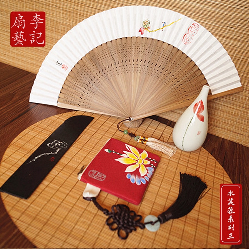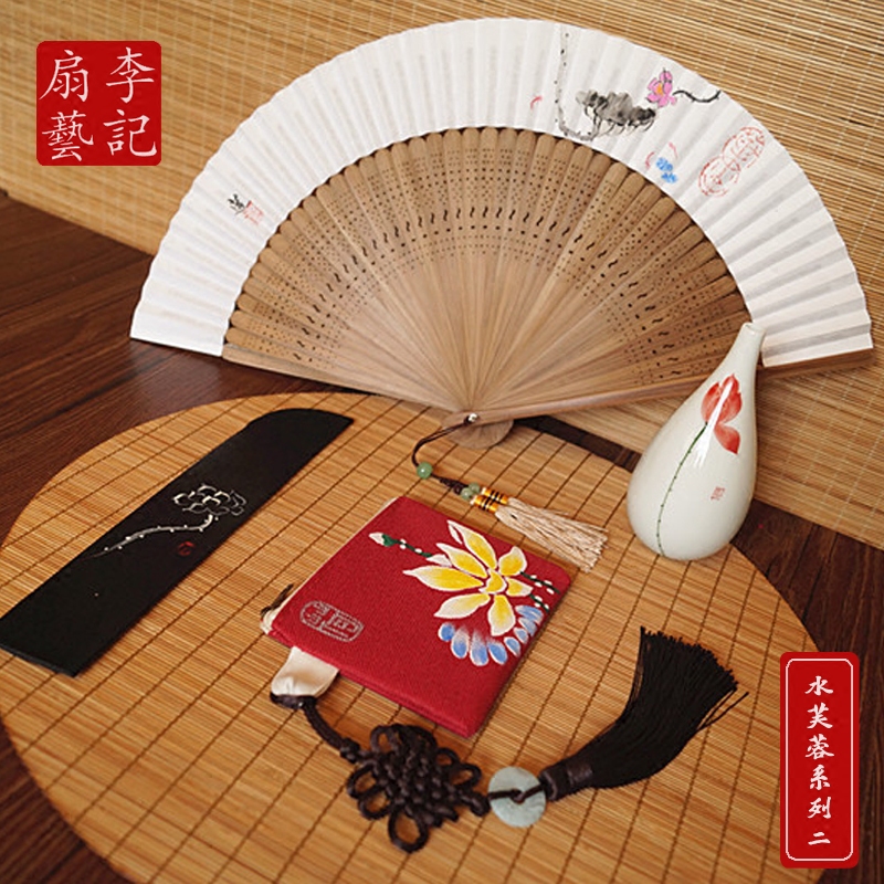 LJ-Water Hibiscus Original Hand-painted Paper Fan