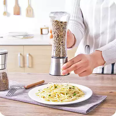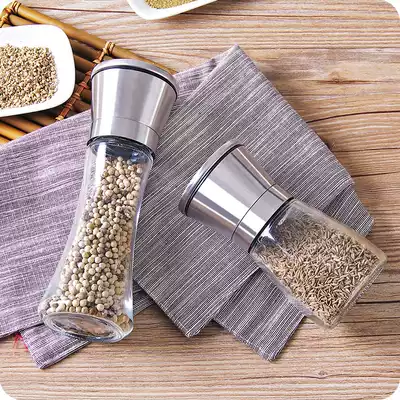 Household stainless steel pepper manual grinder seasoning Jar Kitchen glass pepper black pepper Sesame grinding bottle