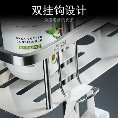 Bathroom shower rack no hole 304 stainless steel tray cosmetic room shower room net basket nail free storage layer rack