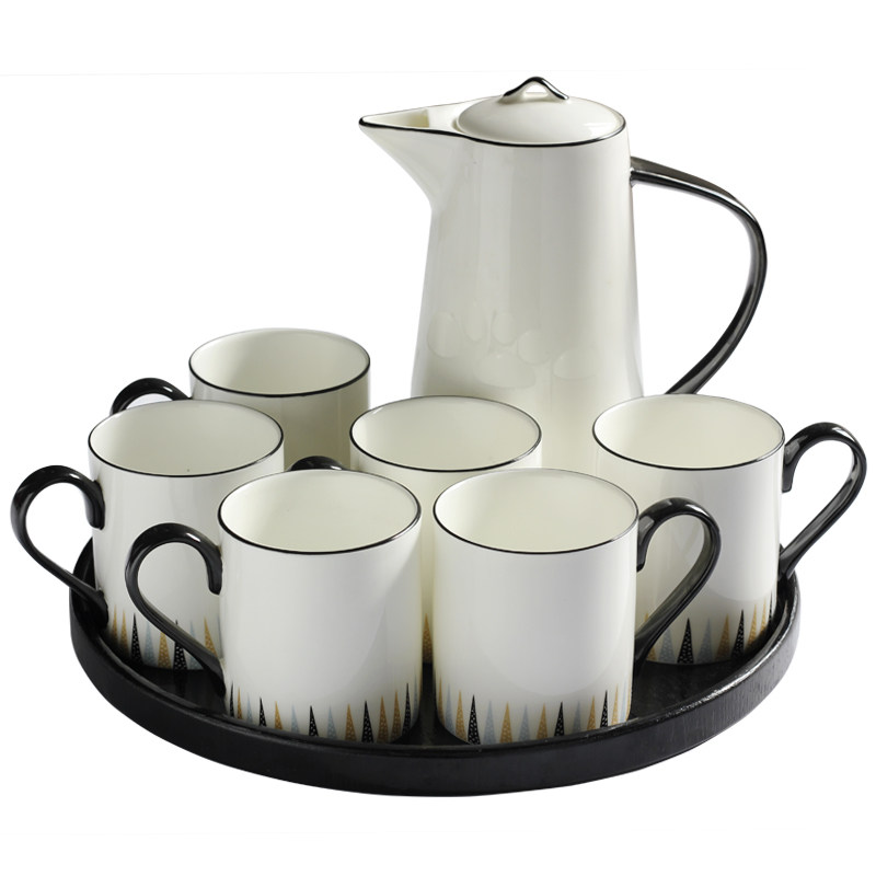 Geometric 1 pot 6 cups 1 round wooden dish 6 white spoons